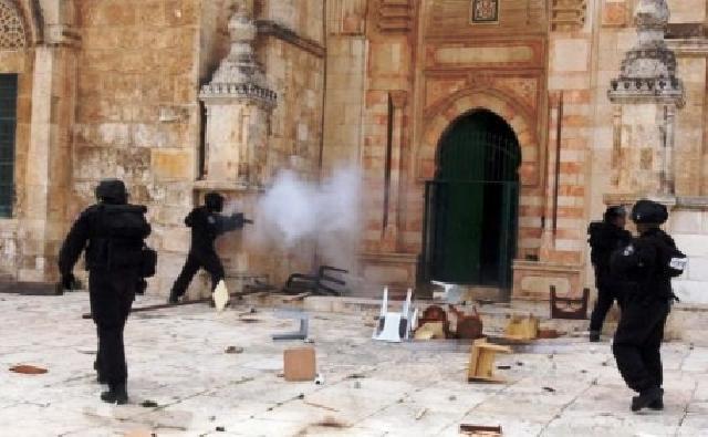 وافاد شهود عيان، بأن قوات للاحتلال أطلقت الرصاص المعدني المغلف بالمطاط وقنابل الصوت، والغاز المسيل للدموع في المصلى القبلي لإجبار المواطنين على الخروج منه، وأخلته وسط مواجهات عنيفة تدور في المكان، أدت إلى إصابة أكثر من 163 مواطنا تركزت إصابة عدد كبير منهم في الرأس والعيون، نقل 83 منهم إلى المستشفى، واعتقال آخرين، كما اقتحمت غرفة الأذان في الأقصى، وقطعت أسلاك مكبرات الصوت لمنع "الأوقاف الاسلامية" من الحديث مع المواطنين.