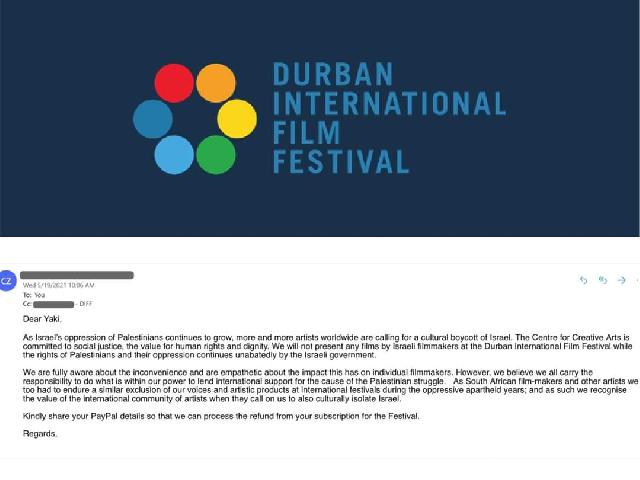 أعلن القائمون على مهرجان ديربان السينمائي الدولي، الذي يقام سنويا في مقاطعة كوازولو ناتالبجنوب إفريقيا، عن مقاطعته للأعمال الإسرائيلية ومنعها من المشاركة، بسبب الانتهاكات الإسرائيلية المرتكبة بحق الشعب الفلسطيني.