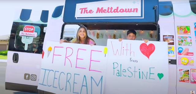 ويظهر في الفيديو الذي تبلغ مدته 12 دقيقة و25 ثانية، الثنائي مروة والمالح، وهما يقومان بتوزيع "البوظة"، والبالونات التي كتب عليها اسم فلسطين بشكل مجاني على المارة في الحارات والشوارع والحدائق العامة في ولاية كاليفورنيا، من خلال شاحنة خاصة رفعت لافتات كتب عليها (With love from Palestine)، (Free ice cream.
