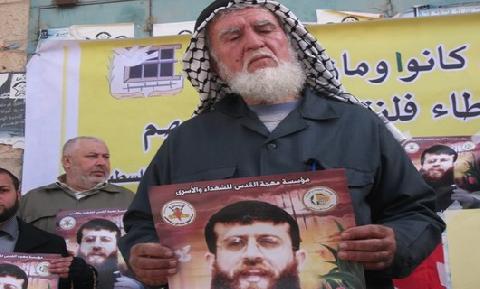 رشحت عيون الحاج عدنان موسى بالبكاء، خلال اعتصام تضامني وسط جنين ظهر اليوم، تضامناً مع ابنة خضر، الذي يخوض إضراباً مفتوحاً عن الطعام منذ 58 يوماً. فيما كان صوته، الذي استخدمه في الماضي للبيع في سوق الخضار، يُدلل على خطيب مفوه، ينتقي عبارات خلطت الدين بالجغرافيا، واستشهدت بآيات قرآنية وأحاديث نبوية، مثلما انتقدت الغياب الذي يلاقيه ابنه، وسائر أسرى الحرية.