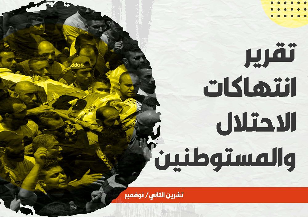 ورصدت وكالة الأنباء والمعلومات الفلسطينية "وفا"، في تقريرها الشهري الحادي عشر حول انتهاكات الاحتلال الإسرائيلي والمستوطنين، بالاعتماد على شبكة مراسليها في كافة المحافظات، بما فيها العاصمة المحتلة، القدس، وبعض المؤسسات الحقوقية والإنسانية، استشهاد 5 مواطنين بينهم طفلان وإصابة 133 مواطنا واعتقال 199 آخرين كحصيلة اعتداءات الاحتلال في نوفمبر/ تشرين الثاني المنصرم.