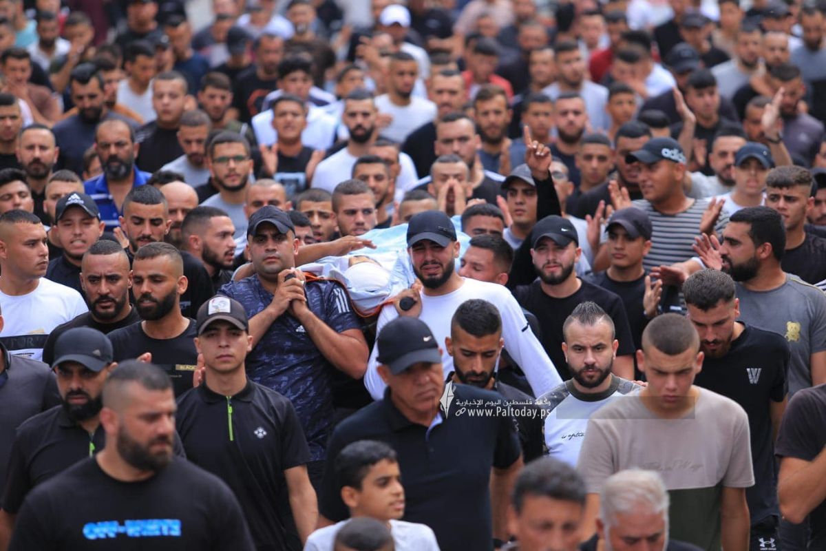 ورفع المشيعون العلم الفلسطيني، مرددين الهتافات الغاضبة والمنددة بالاحتلال وجرائمه المستمرة بحق أبناء شعبنا، موجهين التحية لأهالي مخيم شعفاط وبلدة عناتا المحاصرتين من قبل الاحتلال منذ ستة أيام.