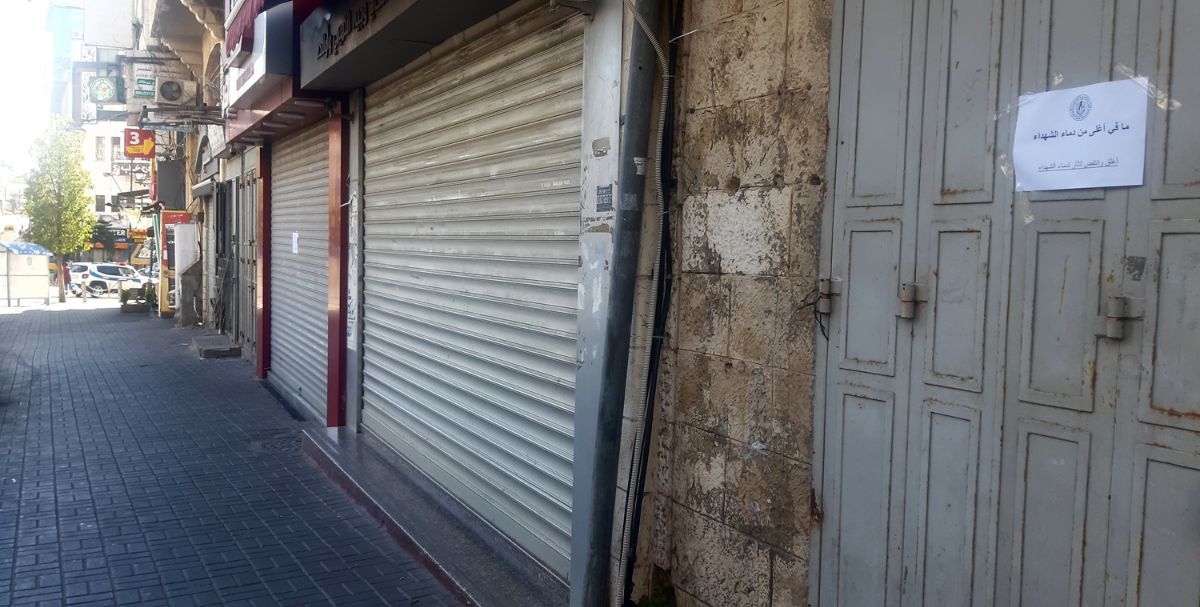 وشمل الإضراب إغلاق المدارس وعدم التوجه العمال إلى أماكن عملهم، تنديدا بجريمة الاحتلال.
