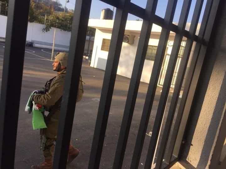 وقالت مديرة المدرسة عائشة نوباني، إن جنود الاحتلال اقتحموا المدرسة، وازالوا العلم الفلسطيني عن سارية الطابور الصباحي.