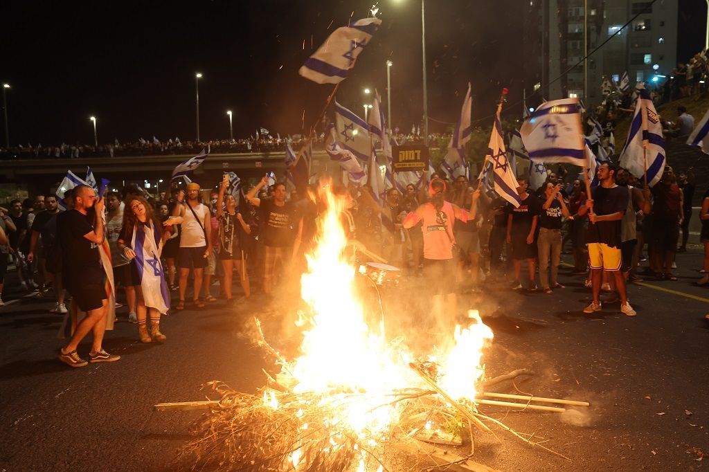 أغلق الآلاف من المتظاهرين، مساء اليوم الثلاثاء، شوارع مركزية وتقاطعات طرق رئيسية في تل أبيب وحيفا والخضيرة وبئر السبع وعدة مدن وبلدات، في إطار الاحتجاجات ضد حكومة بنيامين نتنياهو وخطتها لإضعاف جهاز القضاء.