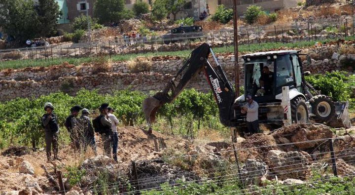 كما جرفت قوات الاحتلال، اليوم، اراضي زراعية وهدمت سلاسل حجرية، في خربة سوبا غرب الخليل.