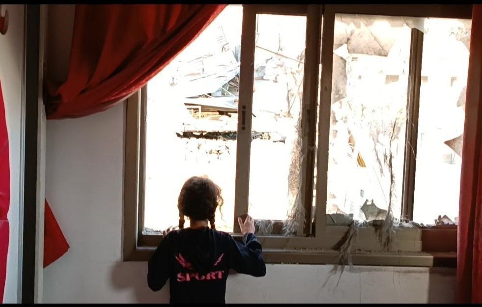 وقفت الطفلة لمار خرّوشة (8 سنوات)، من مخيم عسكر شرق مدينة نابلس، على نافذة منزلها تراقب الركام وآثار الدمار الذي خلفه تفجير قوات الاحتلال لأحد المنازل المجاورة