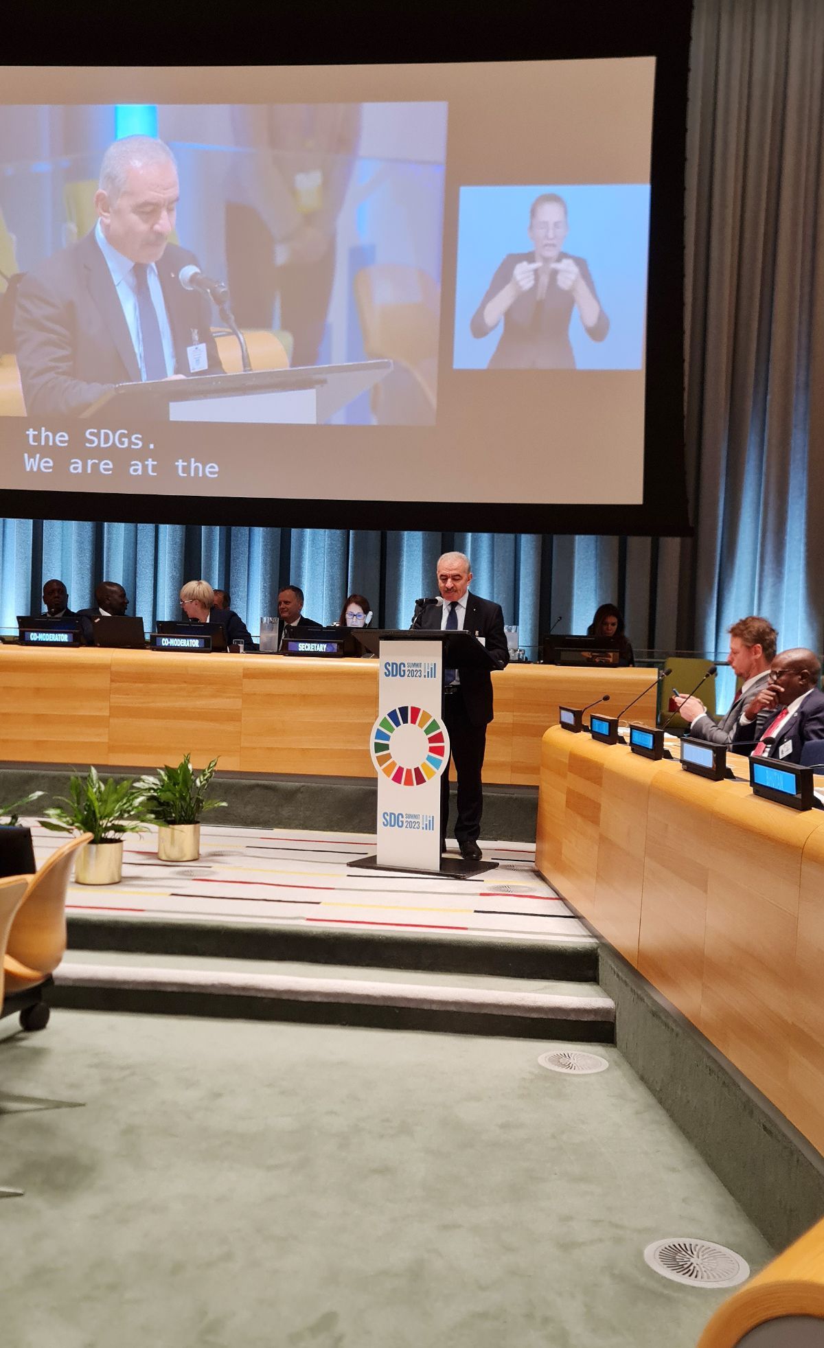 وتابع: "رغم العقبات الناجمة عن واقعنا تحت الاحتلال الإسرائيلي لأرض دولتنا فلسطين، فإن حكومتنا قامت بوضع الترتيبات المؤسسية اللازمة للوصول إلى أهداف أجندة التنمية المستدامة".