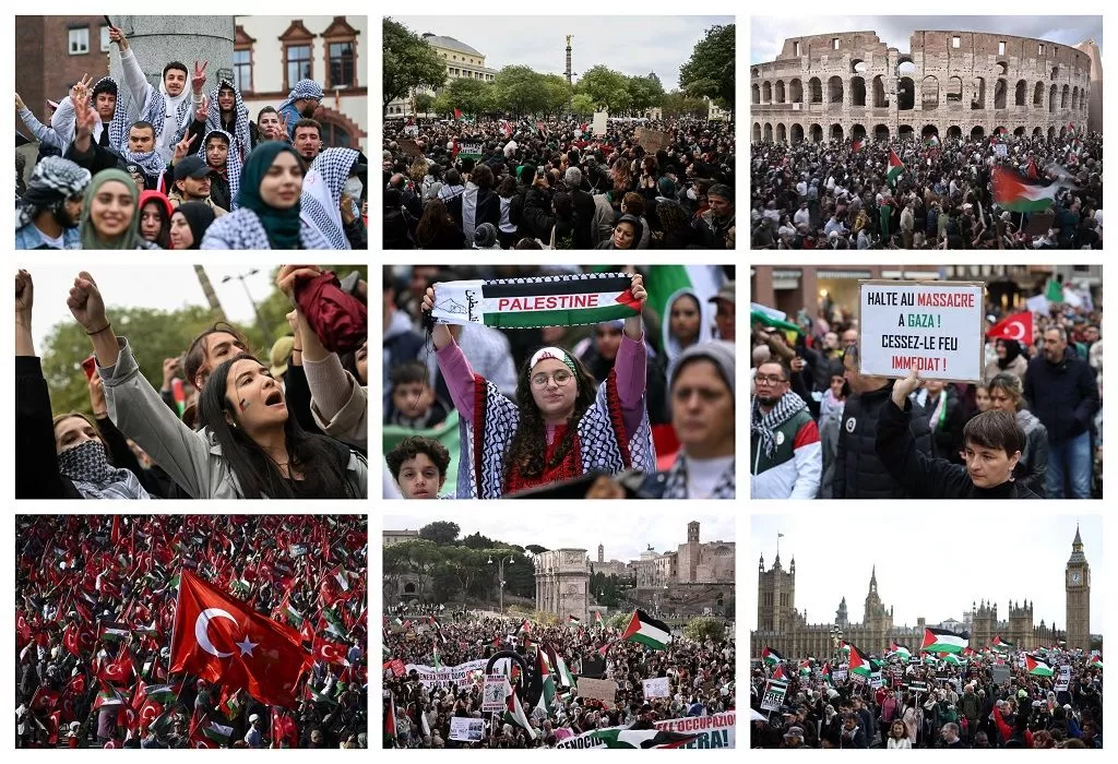شهدت العديد من المدن والعواصم العربية والعالمية، اليوم السبت، مظاهرات ومسيرات حاشدة منددة باستمرار العدوان الإسرائيلي على قطاع غزة.