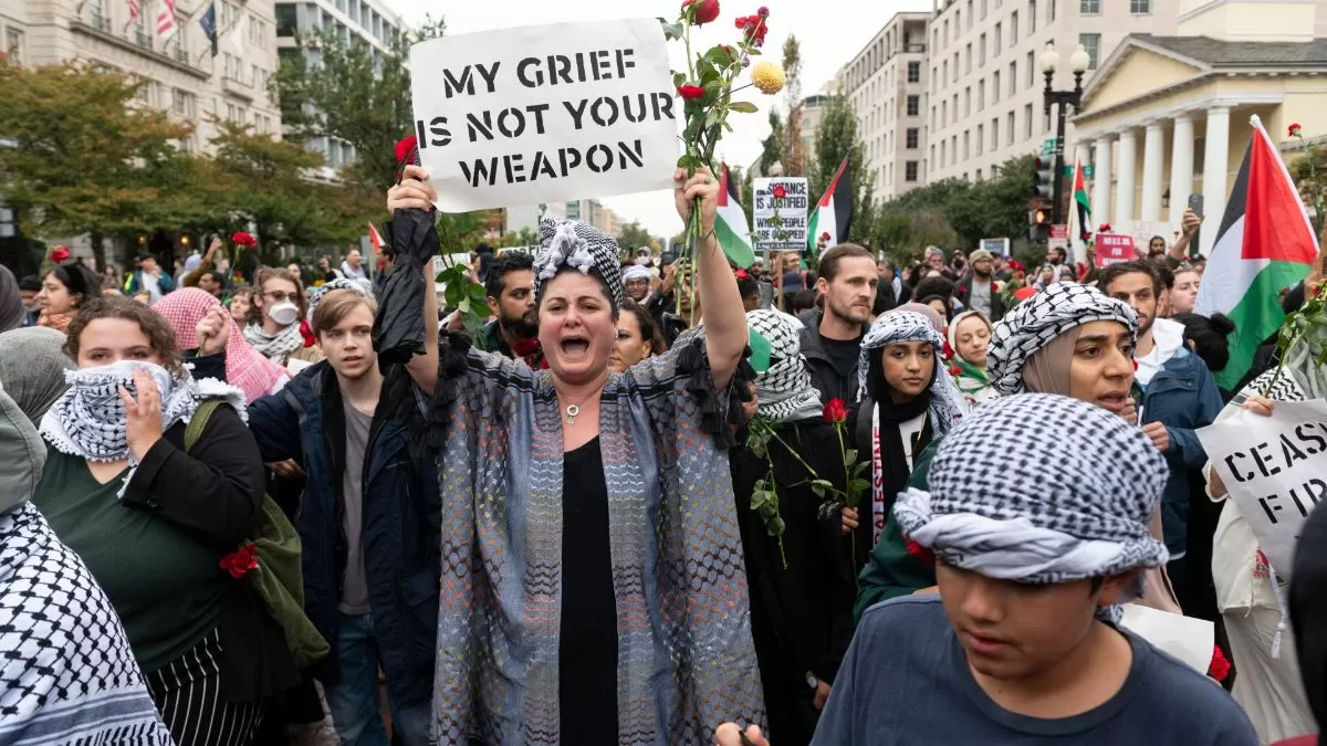 كما نظمت مظاهرة أمام منزل مستشار الأمن القومي الأميركي جاك سوليفان، في واشنطن، للدعوة إلى وقف عوان الاحتلال ولحثه على وقف دعم اسرائيل وتزويدها بالسلاح لقتل الفلسطينيين.