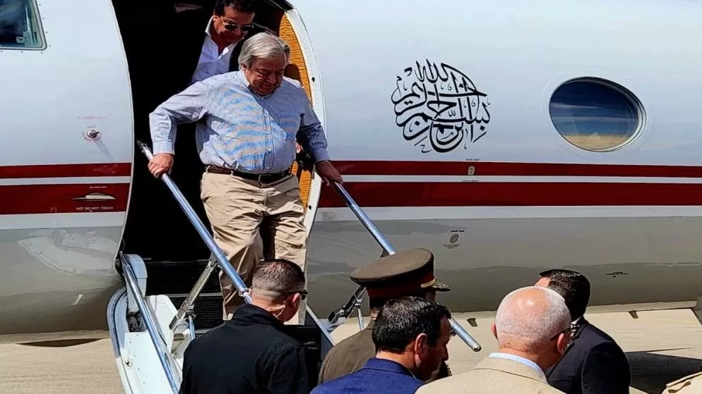 غوتيريش يصل مطار العريش لزيارة معبر رفح تضامنا مع قطاع غزة