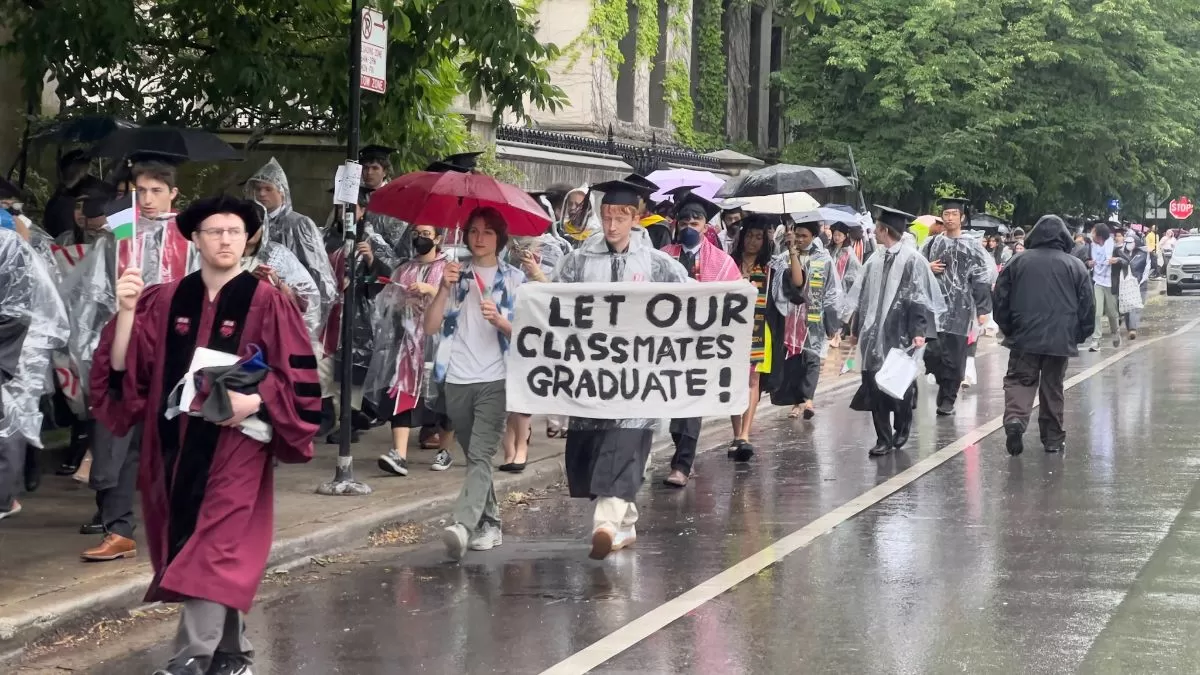 كما غادر المئات من طلبة جامعة شيكاغو حفل تخرجهم، لدعم الطلبة الذين تم حجب شهاداتهم نتيجة مشاركتهم في الاحتجاجات المؤيدة لفلسطين في الحرم الجامعي.