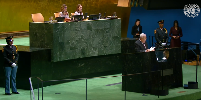الرئيس أمام الجمعية العامة: نطالب بتجميد عضوية إسرائيل في الأمم المتحدة