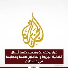 قرار بوقف بث وتجميد كافة أعمال فضائية الجزيرة والعاملين معها ومكتبها في فلسطين