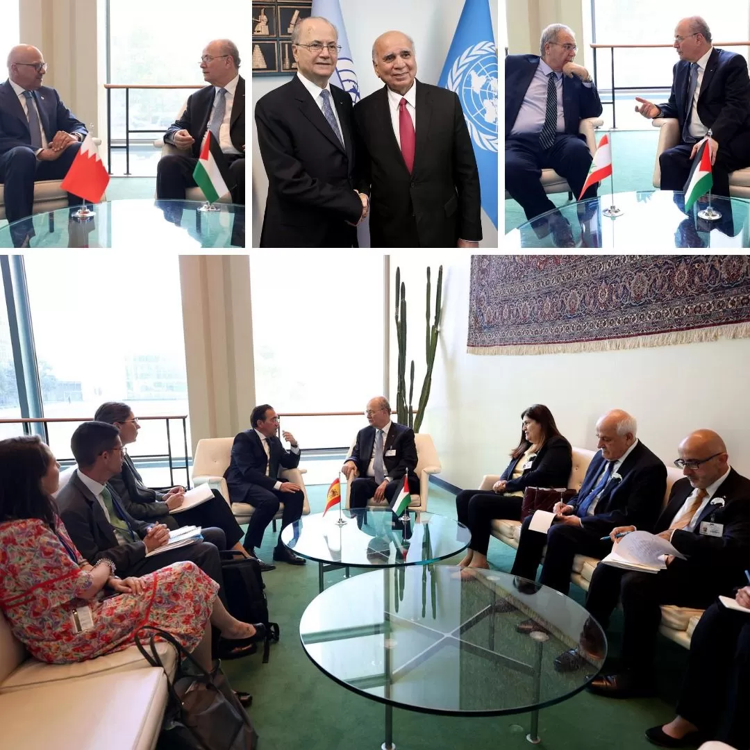 وشملت اللقاءات، كل من: وزير خارجية إسبانيا خوسيه مانويل ألباريس، نائب رئيس وزراء لبنان طارق متري، وزير خارجية العراق فؤاد حسين، وزير خارجية مصر بدر عبد العاطي، وزير خارجية فرنسا جان نويل بارو، وزير خارجية البحرين عبد اللطيف بن راشد الزياني، ووزيرة خارجية كندا أنيتا أناند، بحضور عن الجانب الفلسطيني وزيرة الخارجية والمغتربين فارسين أغابيكيان شاهين، ووزير التخطيط والتعاون الدولي اسطفان سلامة، ومندوب دولة فلسطين الدائم لدى الأمم المتحدة السفير رياض منصور.