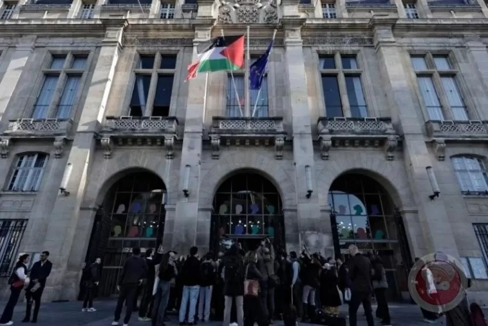 رفع العلم الفلسطيني على واجهة مبنى بلدية سان دوني في فرنسا