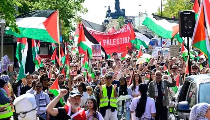 تظاهرة في السويد احتجاجا على استمرار الهجمات الإسرائيلية على قطاع غزة ولبنان