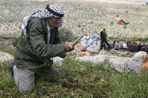 واقفا في وسط عدد من الشبان الذي يزرعون الغراس قال كهل: "المستوطنون يزحفون الى الارض. انهم يريديون سرقتها. يجب ان نستمر في الزراعة".