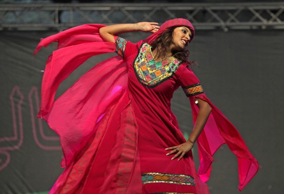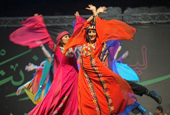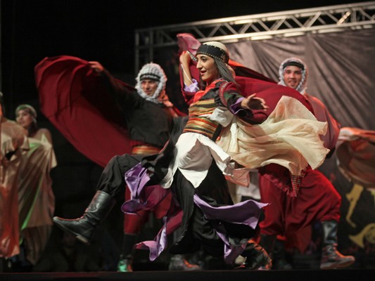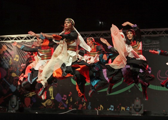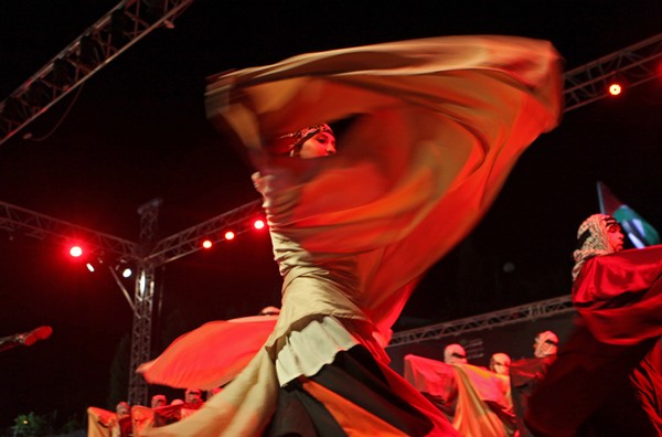 الابتسامة لا تفارق محياهم رغم جديتهم ورغم حرصهم وتركيزهم، لكن الابتسامة لا تتخلى عنهم، حتى عند تأدية حركات على مستوى عال من التركيز والدقة، إنهم فرقة الفنون الشعبية، الذين ما أن صعدوا المسرح حتى تعالى الهتاف أكثر فأكثر، ولم تهدأ الأصوات، ولم تكف الأيدي عن التصفيق، وذهب عدد من الشبان إلى أبعد من ذلك، بتنظيم حلقات دبكة على أطراف المسرح، يرقصون على الإيقاعات التراثية المطعمة بلمحات موسيقية حديثة، ومؤثرات صوتية، لتضفي على الرقصة جوا، وكأنك في ساحة قتال تحت المطر الغزير.