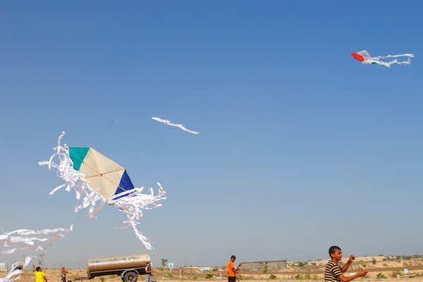 وبدت المنافسة بين الأطفال في من يُظهر جمال طائرته الورقية أو حجمها الكبير، فمنهم من زينها بزخارف ملونة ومنهم من طبع عليها علم فلسطين