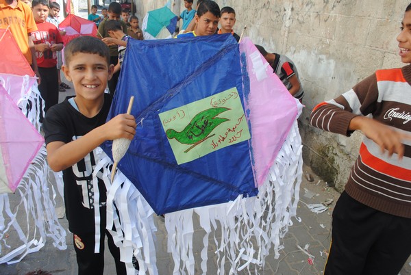 "أمن" و"حرية" و"الحق في الحياة" و"الحق في اللعب" شعارات كتبها العشرات من الأطفال والزهرات على طائراتهم قبل أن يطلقوا لها العنان لتحلق في سماء غزة على أمل أن يجدوا ما يختلج في نفوسهم في الأفق.