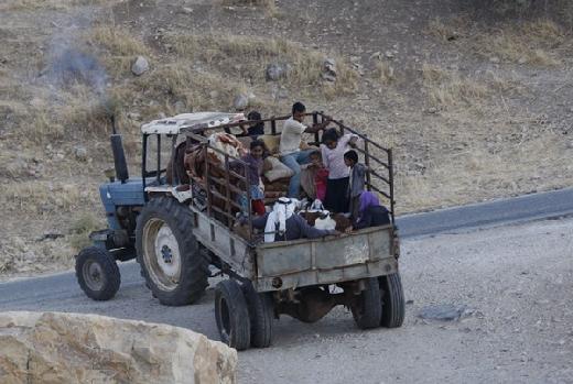 " لا وقت للانتظار" قال الرجل فيما كان يقود جرارا زراعيا حمل فيه عدة اطفال فيما نقلت النساء في جرار اخر.