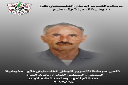 بكل اعتزاز وتقدير ثوري تنعى حركة التحرير الوطني الفلسطيني "فتح" ولجنتها المركزية ومجلسها الثوري وكوادر الحركة في العالم احد قادتها الكبار المؤسس اللواء محمد العزة " ابو مهند " عضو المجلس الوطني الفلسطيني والذي وافته المنية صباح هذا اليوم اثر مرض عضال .