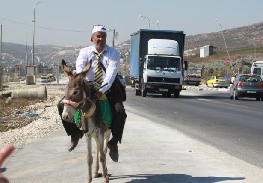 الحمار وسيلة نقل بالضفة بعد رفع أسعار المحروقات.... صحفي ذهب إلى عمله ممتطيًا حمارًا