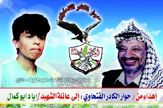 أسرة حوار الكادر الفتحاوي تزور بيت الشهيد إياد أبو كمال ، أول شهداء الانتفاضة في حي الشيخ رضوان ، وكان الاستقبال والترحيب كبير من عائلة الشهيد بالأخوة القادمين لتكريم الشهيد البطل إياد ، وتفاجأ الأخوة برغم مرور 26 عام علي استشهاد البطل إياد إلا أن عائلته لازالت تحتفظ بالقناع الفتحاوي الذي كان يرتديه الشهيد لحظة استشهاده أثناء تنفيذ مهمة عسكرية وقد اخترقت الرصاصات هذا القناع ، وهو عبارة عن الكوفية الفتحاوية ، فكان للموقف آثرا في نفوس الجميع وعانق الأخوة هذا القناع لأنه يمثل الفخر والاعتزاز للوطن والفتح ،