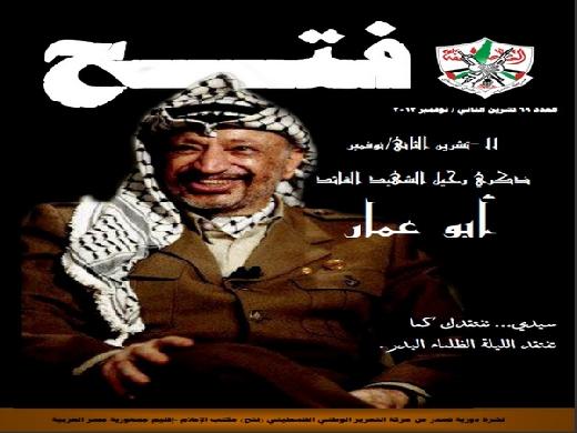zaأصدر مكتب الإعلام التابع لحركة التحرير الوطني الفلسطيني "فتح" إقليم جمهورية مصر العربية العدد (69) من نشرة فتح الشهرية، التي حمّلت في افتتاحيتها إسرائيل مسئولية جريمة قتل رئيس الفلسطينيين ورمزهم وقائدهم ياسر عرفات, الذي نجا من كل قتل آخر، دبّروه له عبر مسيرة الإرهاب والجريمة التي مارسوها في كل تاريخهم! لقد اصطادوه ويده ممدودة بالسلام وغصن الزيتون. دمروا المقاطعة شبراً شبراً، لم ينالوا منه، قائلاً أبو عمار: "يريدونني إما أسيراً، أو طريداً، أو قتيلاً، وأنا أقول لهم بل شهيداً شهيداً شهيداً".