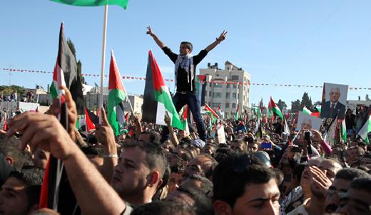 تجر الحاجة هند العدوي، من مخيم بلاطة شرق نابلس، أثقال عمرها السبعين، قاصدة مقر المقاطعة في مدينة رام الله، تزاحم آلاف المواطنين الوافدين، في محاولة منها للوصول إلى الصف الأمامي المقابل للمنصة حيث أستُقبل الرئيس محمود عباس اليوم الأحد، بعد عودته من نيويورك بعد قبول دولة فلسطين بصف مراقب في الأمم المتحدة.