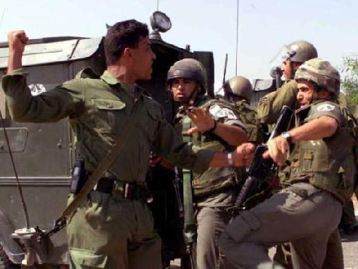 ضابط امن فلسطيني في مواجهة مع جنود الاحتلال - ارشيف