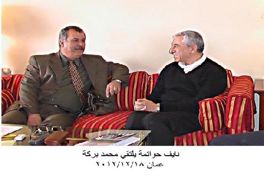 وكشف حواتمة انه إلتقى رئيس السلطة الفلسطينية محمود عباس في عمان صباح امس الاول، وتباحث معه حول العديد من القضايا الرئيسية وفي مقدمتها قرار الدولة الأخير، مطالبا الذين عارضوا هذه الخطوة ان يتراجعوا عن موقفهم ويمارسوا نقدا ذاتيا قبل فوات الأوان.