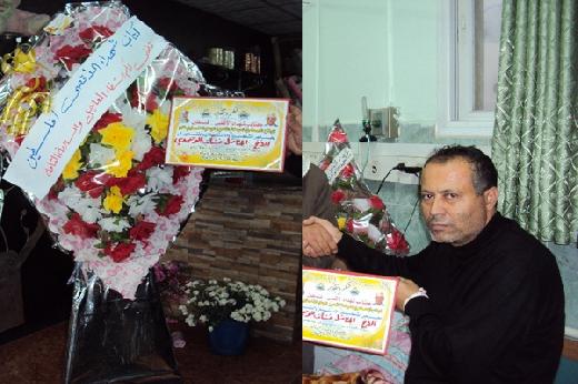 zaنظم وفد قيادي من كتائب شهداء الأقصى في فلسطين، الجناح العسكري لحركة (فتـــح) مساء اليوم الجمعة، زيارة للأخ المناضل، نشأت الوحيدي (أبو ناصر) ممثل حركة فتح في لجنة الأسرى للقوى الوطنية والإسلامية في قطاع غزة، والذي يرقـد في مجمع دار الشفاء الطبي، إثر إصابته بوعكة صحية يوم الأربعاء الماضي أثناء مشاركته في مسيرة التضامن مع الأسرى في سجون الإحتلال، وقـد تمكن الوفـد الزائر من الإطمئنان على صحة "الوحيدي".