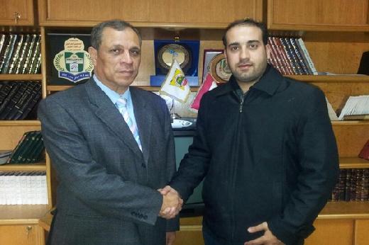 zaناقش يوسف الاستاذ امين سر نقابة الصحفيين الفلسطينيين خلال اجتماع وفد من نقابة الصحفيين مع السيد حاتم زكريا الامين العام لاتحاد الصحفيين العرب سبل تعزيز التعاون المشترك بين النقابة والاتحاد العام للصحفيين العرب .