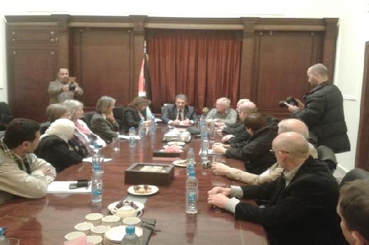 ووضع السفير دبور الوفد في صورة الاعتداءات الاسرائيلية المستمرة على الشعب الفلسطيني والحملة الاسرائيلية الشرسة على مقدساتنا المسيحية والاسلامية وما تتعرض له مدينة القدس من حملة تطهير عرقي واستمرار البناء في المستوطنات وقرصنة اسرائيل على اموالنا العائدة من الضرائب.