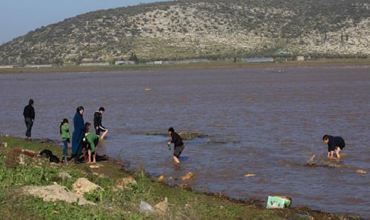 واقفا، على الشاطئ الموحل الذي تلمع كتل الملح المتكلس على أطرافه قال العواطلة ان المياه تراجعت عن العام الماضي. "كانت هناك. كانت فوق" . والشاطئ الممتد على مسافة عدة كيلومترات يخلو من المتنزهين بعد أن أكملت السلطات الإسرائيلية وضع سياج شائك حوله من الجهة الغربية.