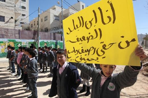 طلبة 'فلسطين الغد' يعتصمون أمام مدرستهم للمطالبة بحماية مدخل المدرسة