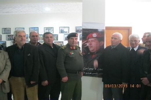 وقد زينت صور المناضل العالمي تشافيز والعلمين الفلسطيني والفنزويلي قاعة الجمعية ، وتوافد على بيت العزاء قيادات سياسية ونيابية واجتماعية بينهم الناطق باسم كتلة فتح البرلمانية عزام الاحمد ، ونائب محافظ بيت لحم محمد طه ابو عليا ، وأعضاء المجلس التشريعي فايز السقا ، ومحمد اللحام " ابو خليل " ، وفؤاد كوكالي ، وداؤد مطر رئيس الجمعية الامبراطورية الروسية ، وقائد منطقة بيت لحم سليمان قنديل ، ورئيس بلدية بيت جالا الدكتور نائل سلمان ، وممثلين عن بلديات بيت لحم ، وممثلين عن لجنة التنسيق الفصائلي ، و عشرات المناضلين والأسرى والفعاليات والسياسية والنسوية و المؤسساتية من مختلف القوى الفلسطينية .