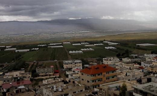 من شرفة منزل آل الجرمي يمكن النظر بسهولة إلى المنطقة الحدودية التي تجري فيها الكيبوتسات الزراعية عمليات تسوية للأرض وغرس فسائل نخل من صنف المجهول.