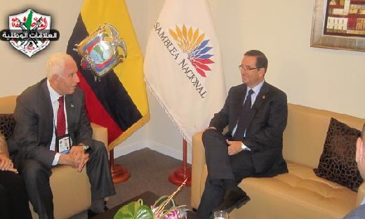 الوفد الفلسطيني، فكان من الطبيعي أن تصوت الاكوادور الى جانب الطلب الفلسطيني في الامم المتحدة بالاعتراف بفلسطين دولة لأن ذلك نابع من عقيدة قوية بضرورة نيل الفلسطينيين حقوقهم كاملة.