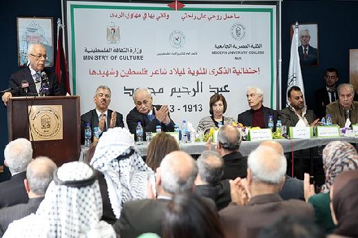 من جهتها قالت وزيرة الثقافة سهام البرغوثي إن الاحتفاء بشاعر كبير كعبد الرحيم محمود واجب وطني وثقافي، حيث كان مقررا تخصيص عام 2013 لإحياء ذكرى الشاعر عبد الرحيم محمود في ذكرى ميلاده المئة.