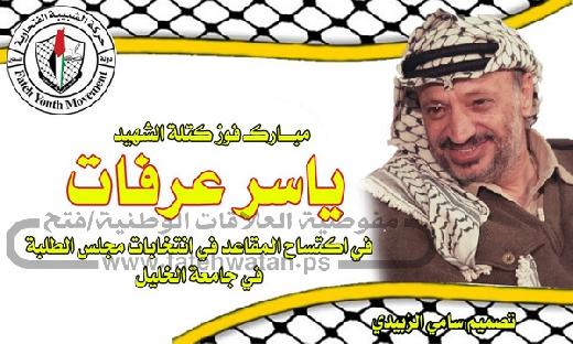 فازت 'كتلة الشهيد ياسر عرفات' الذراع الطلابي لحركة 'فتح'، اليوم الخميس، بانتخابات مجلس طلبة جامعة الخليل بحصولها على 23 مقعدا من أصل 41 مقعدا.