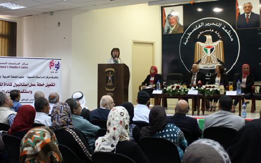 وقدمت عضو الأمانة العامة للاتحاد العام للمرأة منى الخليلي ورقة خاصة حول سلة المطالب النسوية، ودور الفصائل والأحزاب السياسية منها، فيما قدمت عضو الأمانة العامة للاتحاد العام للمرأة ريما نزال، تعريفا شاملا حول إطار مشروع اسطنبول، موضحة الخطوات والإجراءات التي تم اعتمادها من أجل ترسيخ القرارات المنبثقة عن الاجتماعات محليا وعلى المستوى الرسمي.