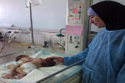 وتمت ولادة الطفلتين في مستشفى هداسا بالقدس المحتلة حيث حولت إليه الأم بسبب التصاق الأجنة من ناحية الصدر، وهي حالة نادرة الحدوث حسب الأطباء.