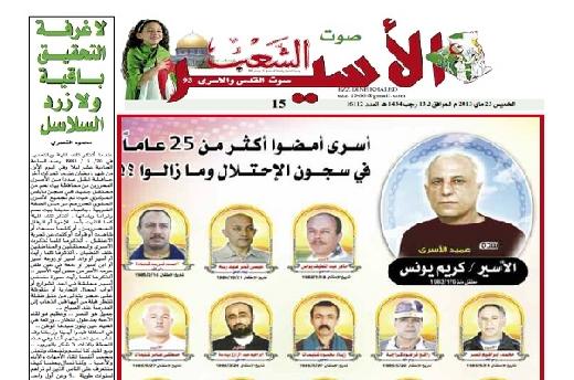 افاد الاخ خالد صالح (عزالدين) المسؤول التنفيدى ومسؤول تحرير ملحق صوت الاسير في تصريح أعلامي ان جريدة الشعب الجزائرية أصدرت ملحق جديد من صوت الأسير وهو الملحق رقم 95 علي التوالي والعدد شمل تغطية متنوعة لواقع الأسري في سجون الاحتلال منوها الي ان عدد من الكتاب والإعلاميين الفلسطينيين والجزائريين شاركوا في الكتابة بالملحق الذي صدر اليوم الخميس الموافق 13-6-2013 بالتعاون والتنسيق بين صحيفة الشعب الجزائرية وسفارة دولة فلسطين وخُصِصَ عدد هذا الأسبوع من ملحق صوت ليتناول واقع الأسري الفلسطينيين في سجون الاحتلال وقضية القدس وممارسات الاحتلال التي تستهدف القدس وتعمل علي تهويدها مشيرا الي أن اغلب مواضيع هذا العدد تركزت واقع طروف الاسري القدامي في سجون الاحتلال وكذلك الاسرى المرضي .. وكان العدد تحت شعار ((الإرهاب القادم ))