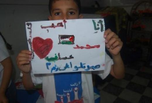haارسل عشرات الاطفال من نادى الشروق والأمل احد مراكز جمعية الثقافة والفكر الحر، غرب محافظة خانيونس جنوب القطاع ، رسائل محبة ودعم للفنان الفلسطينى محمد عساف.