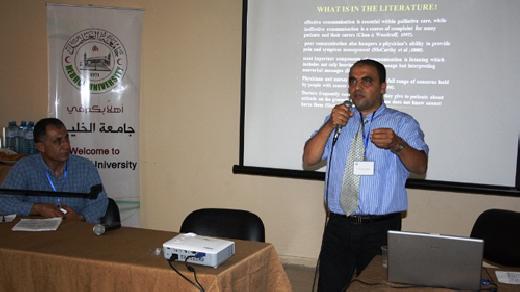 وتحدث المشاركون عن كيفية إبلاغ المريض بوضعه الصحي بشكل يتلاءم مع الثقافة العربية السائدة وحالة المريض النفسية، كما ناقش المشاركون أهمية تعليم العائلة حول الدور العلاجي في رعاية الشخص الذي يعاني من مرض مزمن داخل الأسرة.