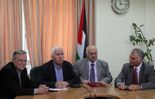 zaتسلم عزام الأحمد رئيس كتلة فتح البرلمانية وكل من مصطفى البرغوثي وبسام الصالحي وقيس عبد الكريم وخالدة جرار ونجاة الأسطل وسهام ثابت وجهاد أبو زنيد ومهيب عواد وعلاء ياغي، التقرير السنوي للعام 2012 لهيئة مكافحة الفساد، وذلك خلال استقبالهم رفيق النتشة رئيس هيئة مكافحة الفساد، في مقر المجلس في مدينة رام الله.