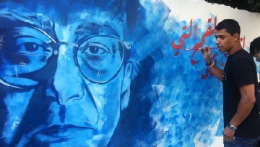 شباب مخيم الدهيشة ينهون رسم جدارية للشاعر محمود درويش